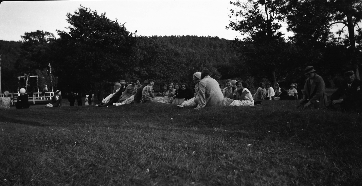 Kalvhults dansbana med folk. Ordningsvakten hette Smen Hugo Larsson.