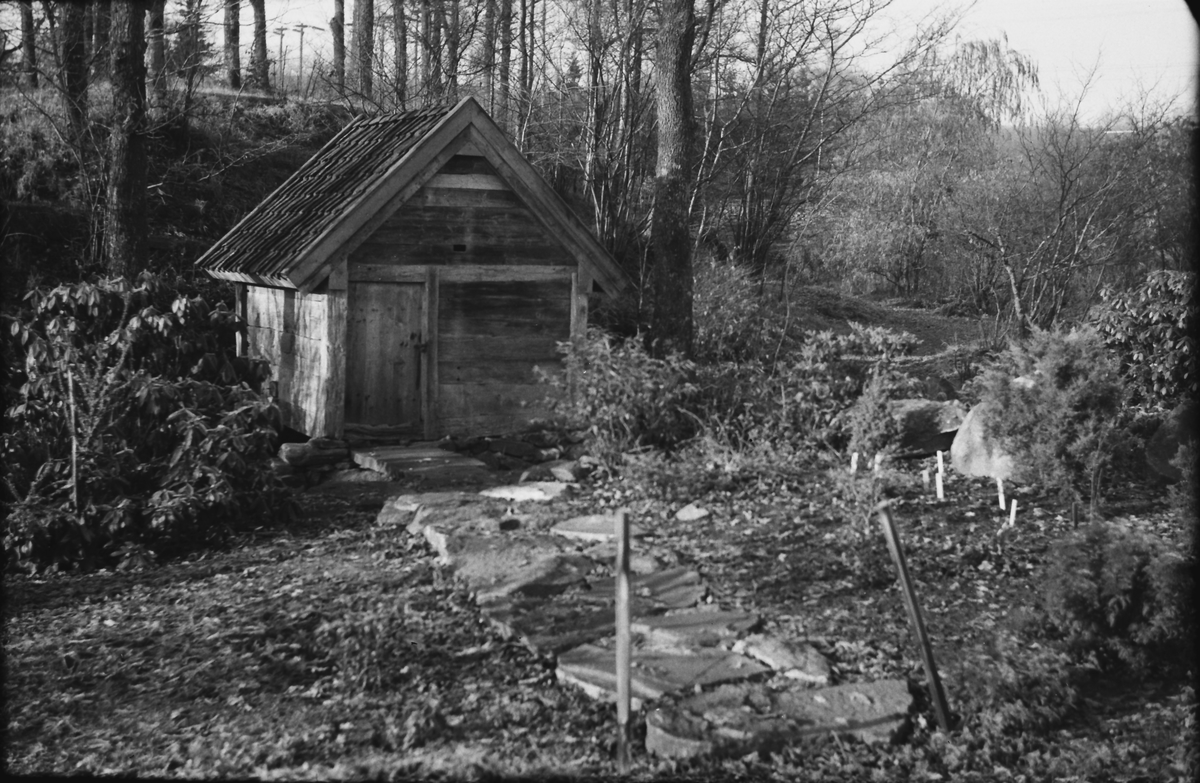Skvaltkvarnen från "Kvarndalen", Ulvatorpsbäcken i Sällstorp, i Fullsbäckens botaniska park anlags av folkskolläraren och kommunalpolitikern Oscar Broborg. Kvarnen stod i Fullsbäcken mellan 1951-2001 men flyttades sedan tillbaka. Till höger syns planteringsstickor.