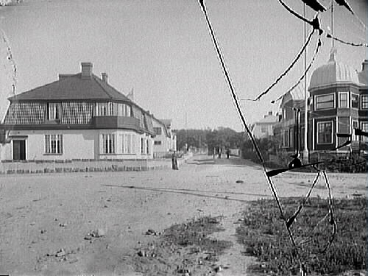 Villor i hörnet Lasarettsgatan-Västra Vallgatan. Kindvalls fastighet, Till höger kvarteret Bomlyckan, till vänster kvarteret fogden. Bilden tagen mot öster.