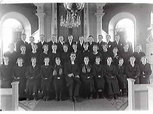 Konfirmation med prästen Strandvik i mitten.
