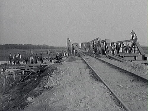 Byte av järnvägsbro över ån Viskan. Järnvägslinjen Åskloster-Väröbacka.
