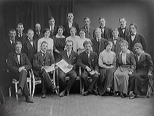 Ateljéfoto av Sveriges godtemplarungdom. Både kvinnor och män.