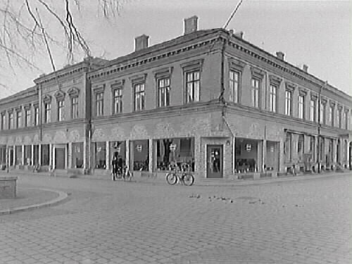 Rommelska fastigheten. Byggnaden låg vid hörnet Kyrkogatan-Drottninggatan och inrymde en tid Monarks minutaffär. Huset har gördelgesims och en kraftig takgesims med tandsnittsdekor.