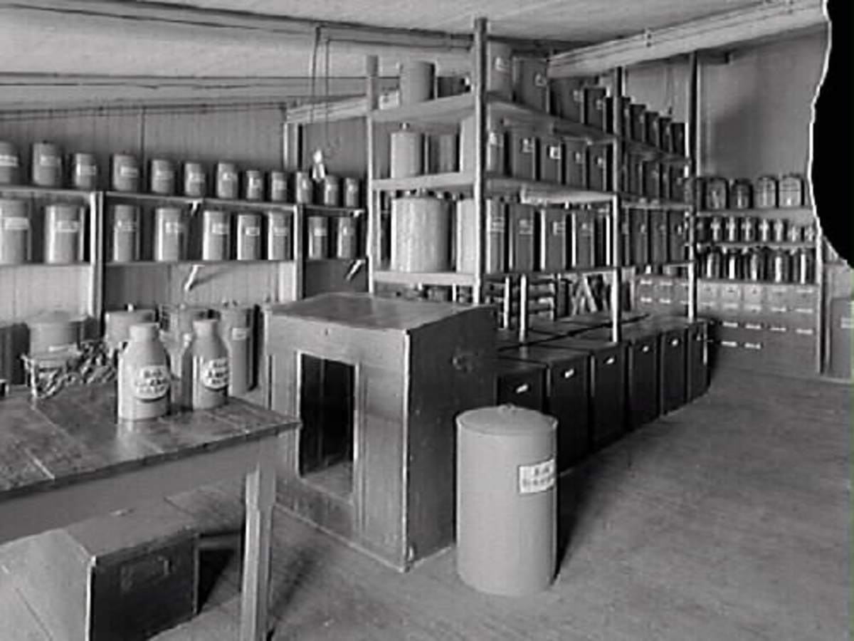Byggnaden låg i hörnet Torggatan-Drottninggatan, kv Apotekaren 8. Interiör från drogrummet.