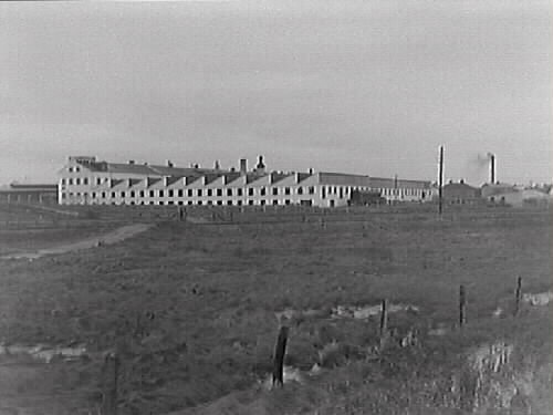 Stålindustri. Gunnebo bruk i Varberg. Fabriken har sågtandstak.