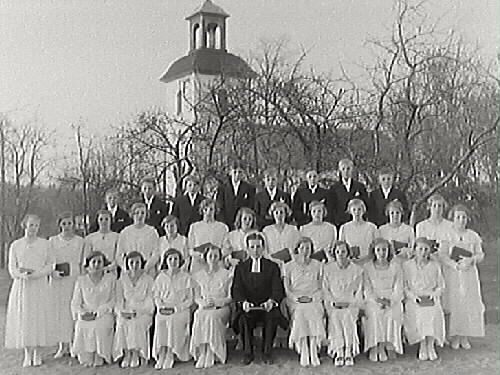 Prästen Lennart Levén sitter i mitten av konfirmandgruppen, som är samlad utanför Istorps kyrka. Från vänster sittande: Margit Johansson, Signe Börjesson, Tora Andersson, Ella Klar, Ingegerd Johansson, Gunvor, Svea Klaesson. 2:a raden: Ebba Johansson, ?, ?, Gördis Wilsson, ?, ?, Elsa Andersson, Birgit Grunditz, Anna Johansson, ?, Asta Johansson, Anna Alexandersson, Alva Ericsson. 3:e raden: Knut Borgeby, Arvid Josefsson, Bertil Mårtensson, Daniel Karlsson, Ivar Johansson, Karl Johansson, ?, Karl-Henning Andersson.