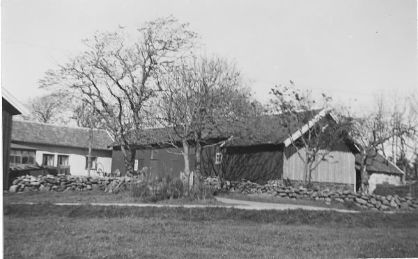 Gården Bäcken, Onsala. Mangårdsbyggnad, ekonomibyggnader och stenmurar.
