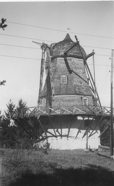 Väderkvarn vid Onsala kyrka på Klockhögen, kallad Mandahls kvarn eller Tulla nätt/lätt. Mandahl drev en affär som låg nedanför kvarnen vid vägen. Takvimpeln förkunnar året 1864. Kvarnen lär ha använts till 1967 och inreddes därefter till bostad.