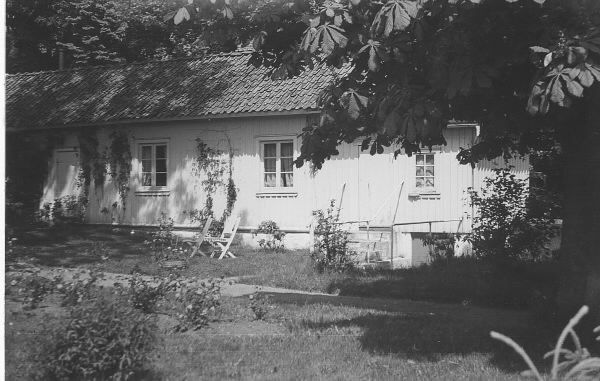 Mangårdsbyggnad på gården Viken, Onsala. Entrédörren ses till vänster och källardörren till höger.