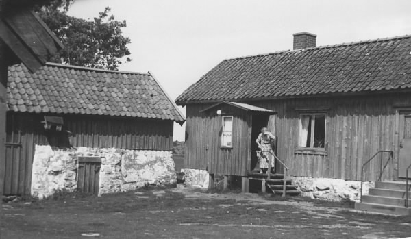 Gården Bro i Onsala, boningshus och uthus som har vitkalkad stenfot respektive vägg.