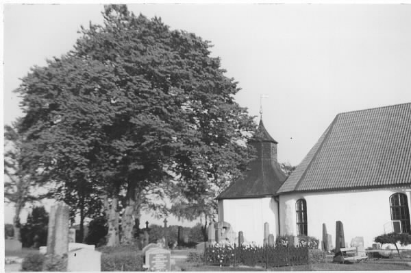 Onsala kyrka och kyrkogård med Gathenhielmska gravkoret tillbyggd i öster.