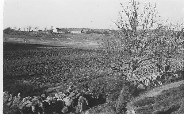 Lantgård med åkrar och stenmur i Mariedal, Onsala.