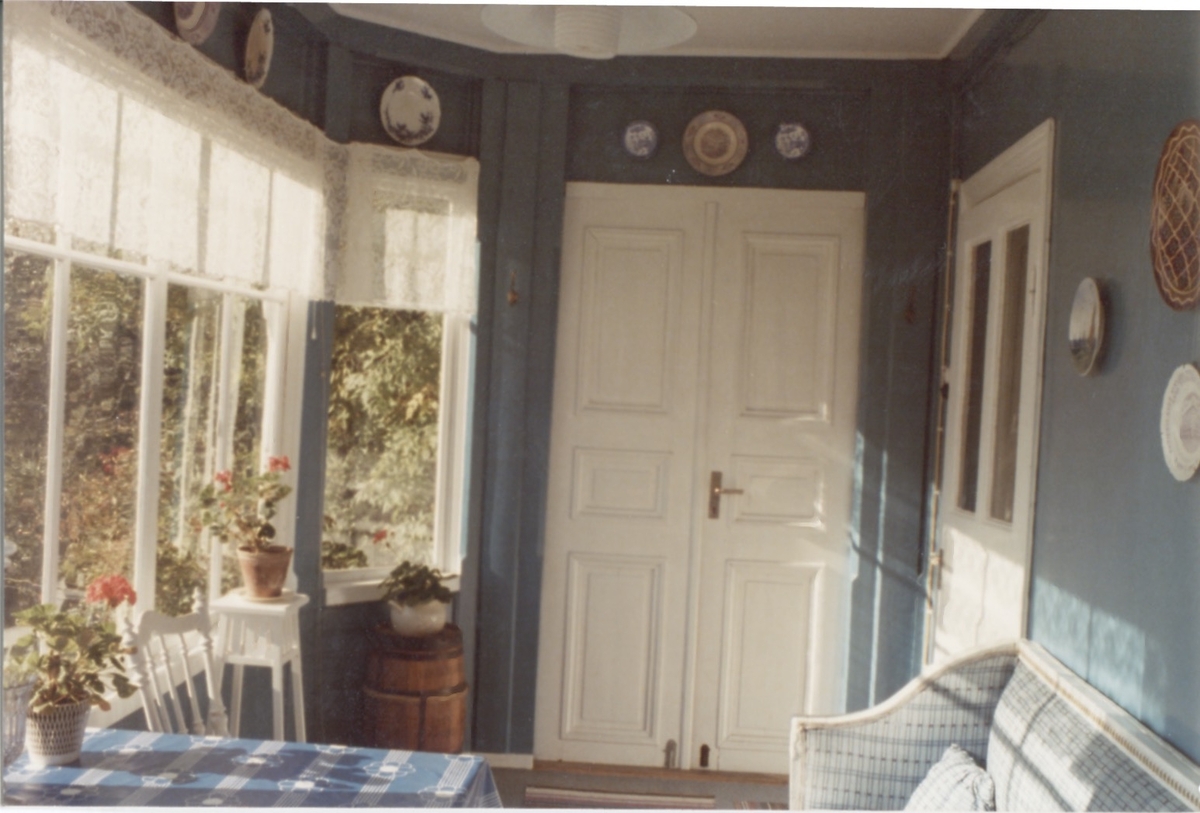 Veranda med dess interiör, "Sandbergs" Sagered 3:3 1970-tal. Verandan byggdes cirka 1900 och ritningen till den finns i Sageredsarkivet hos Kållereds Hembygdsförening.