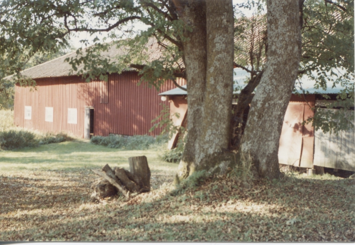Ladugård tillhörande "Sandbergs" Sagered 3:3 1970-tal. Byggnaden revs 2018. Relaterat motiv: A3746.