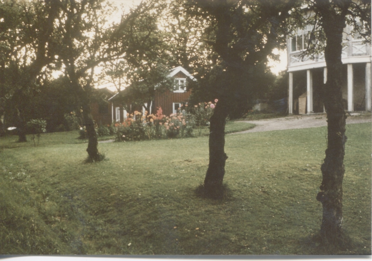 "Sandbergs" Sagered 3:3 1970-tal. I mitten ses flygelbyggnaden som innehöll bland annat brygghus och två lägenheter för sommargäster. Till höger skymtas verandan som låg på gaveln till huvudbyggnaden.