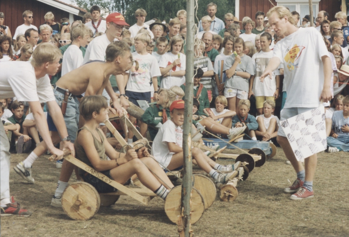 Lek och tävlingar för Kållered missionsförsamlings scouter/juniorer år 1992, okänd plats.