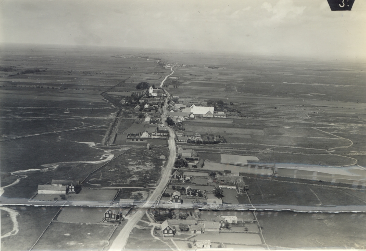 Hulterstad från söder. Hulterstads kyrka skönjs i bildens mellanplan.