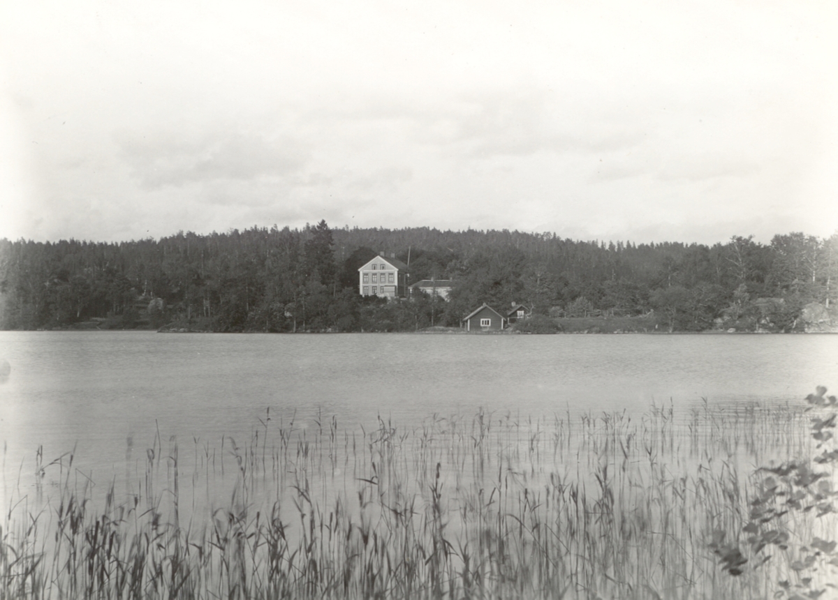 Vackert läge på en i Emten utskjutande udde på vars högsta punkt mangården ligger. Vid stranden bakom mangården ligger laga gården samt en brädgård. Huvudbyggnaden är en stor tvåvånings träbyggnad från 1800 - talet förra del; gult med vita knutar och listverk. Två flankerande lägre flyglar under valmtak.