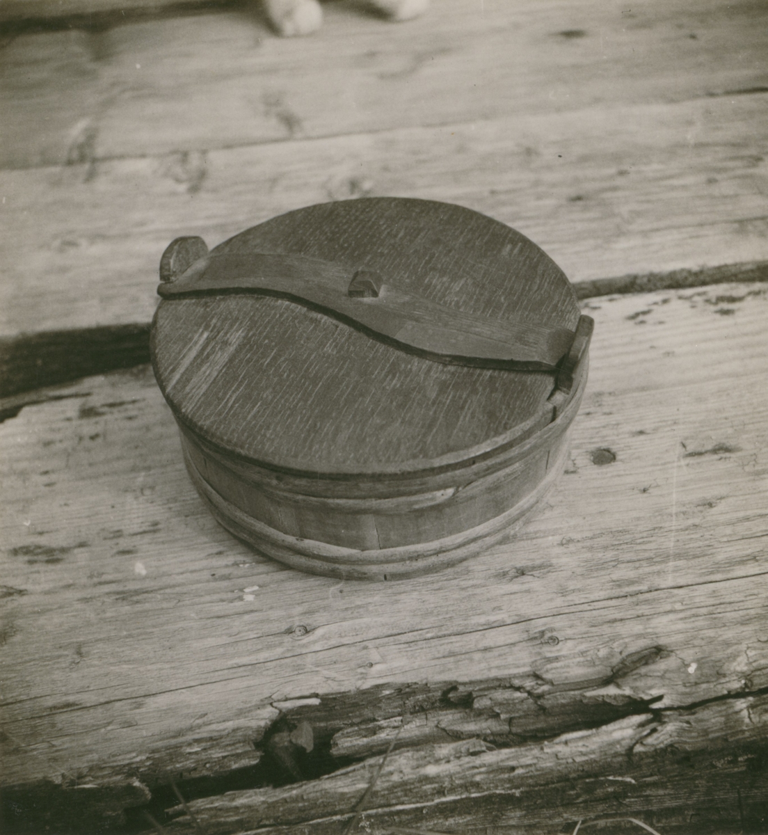 Smörask från Holmskogs by nr 1, Övrabyn laggad, daterad 1838. Bottendiameter: 15 cm. Höjd 7 cm.