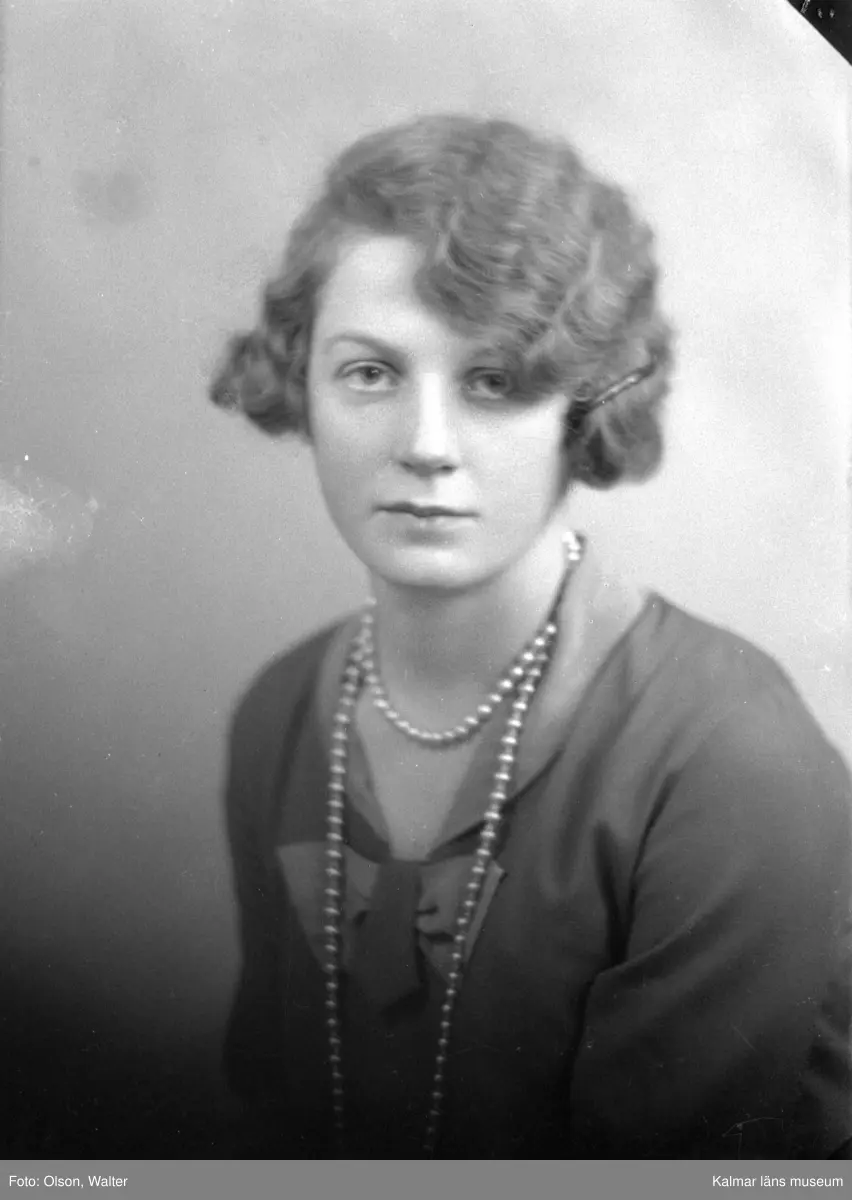 Ateljébild på en kvinna i halsband och klänning. Enligt Walter Olsons journal är bilden beställd av Elisabet Dahlström ifrån Mellsta by.