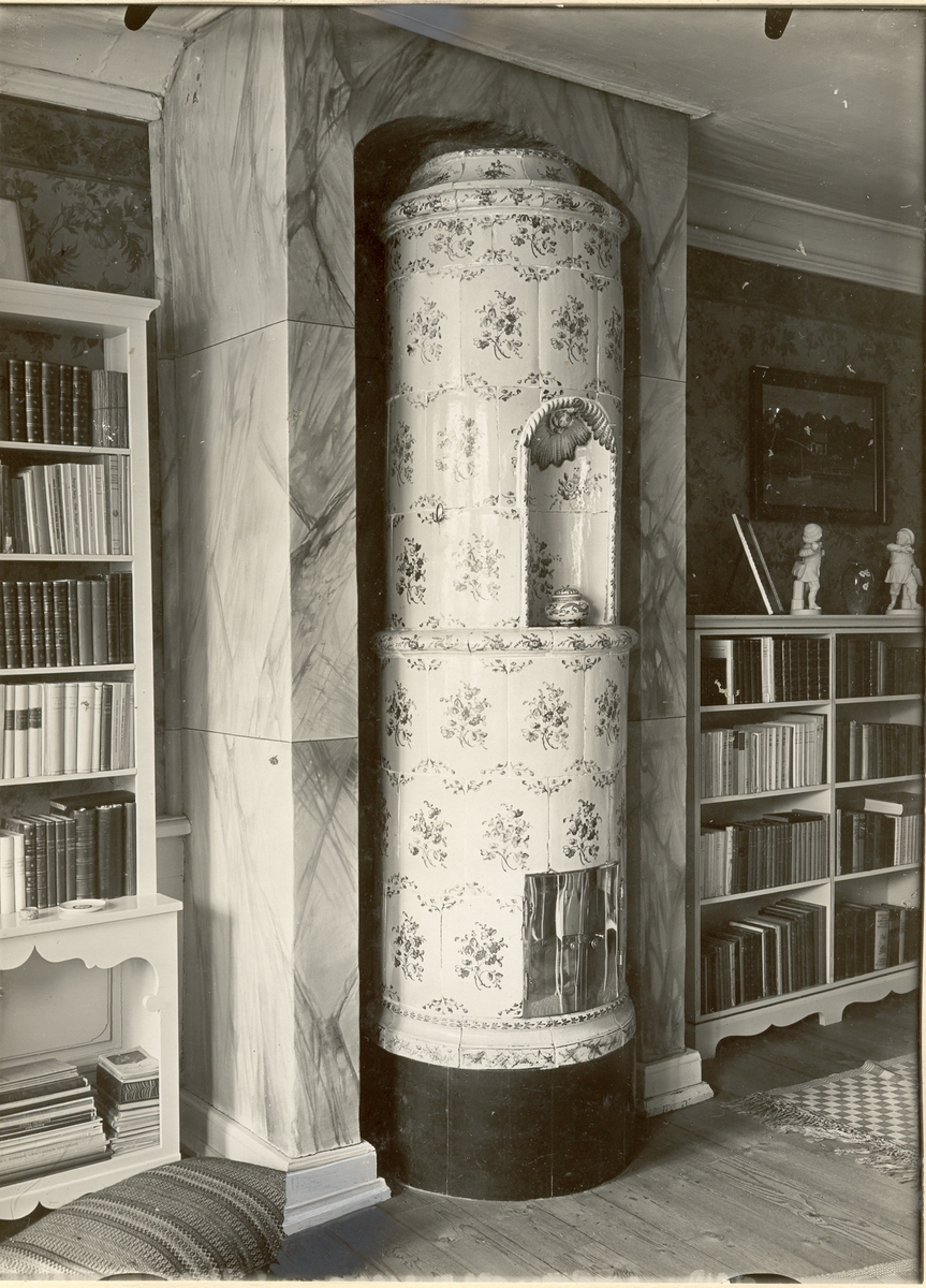 Huvudbyggnaden på Skälby gård: kakelugn på övre våningen.