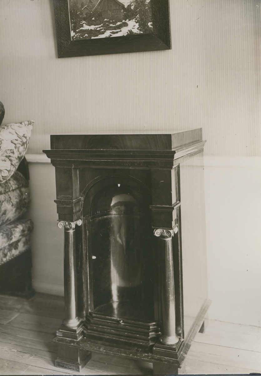 Huvudbyggnaden på Skälby gård, nedre våningen. Empirkommod från Skälby.
