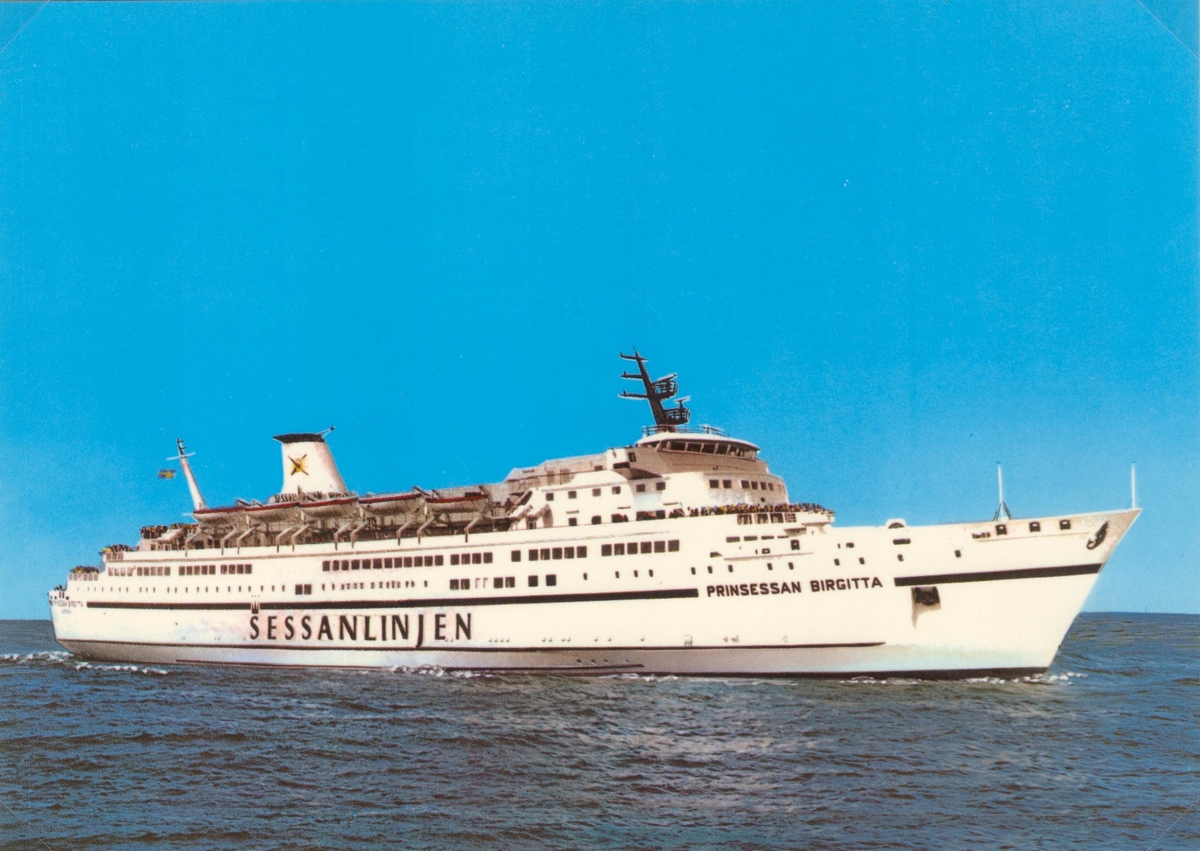 Fartyget MS Prinsessan Birgitta som trafikerade Travemünde-Göteborg, Travemünde-Bornholm och Travemünde-Köpenhamn.