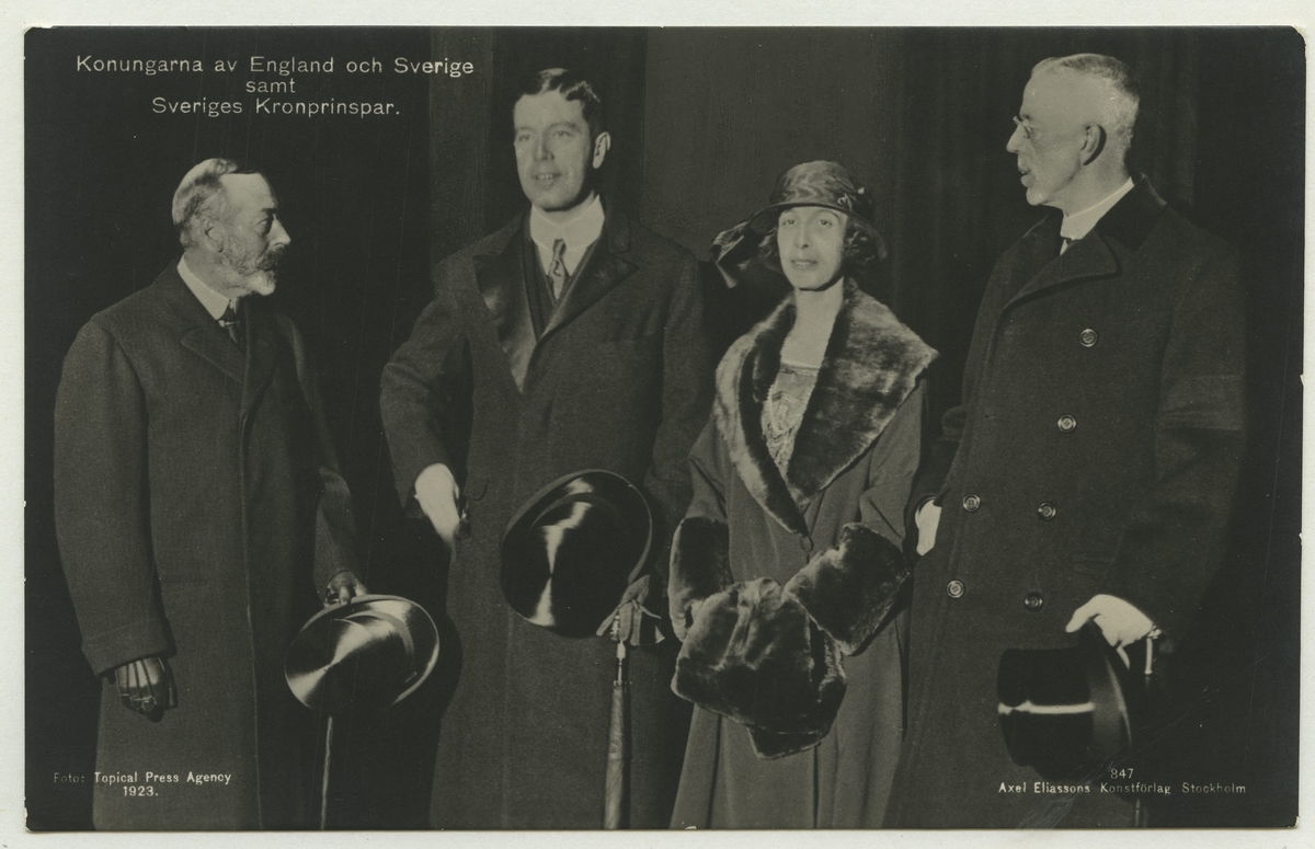 Konungarna Georg V av England och Gustaf Adolf av Sverige samt Sveriges kronprinspar Gustaf Adolf samt Louise Mountbatten.