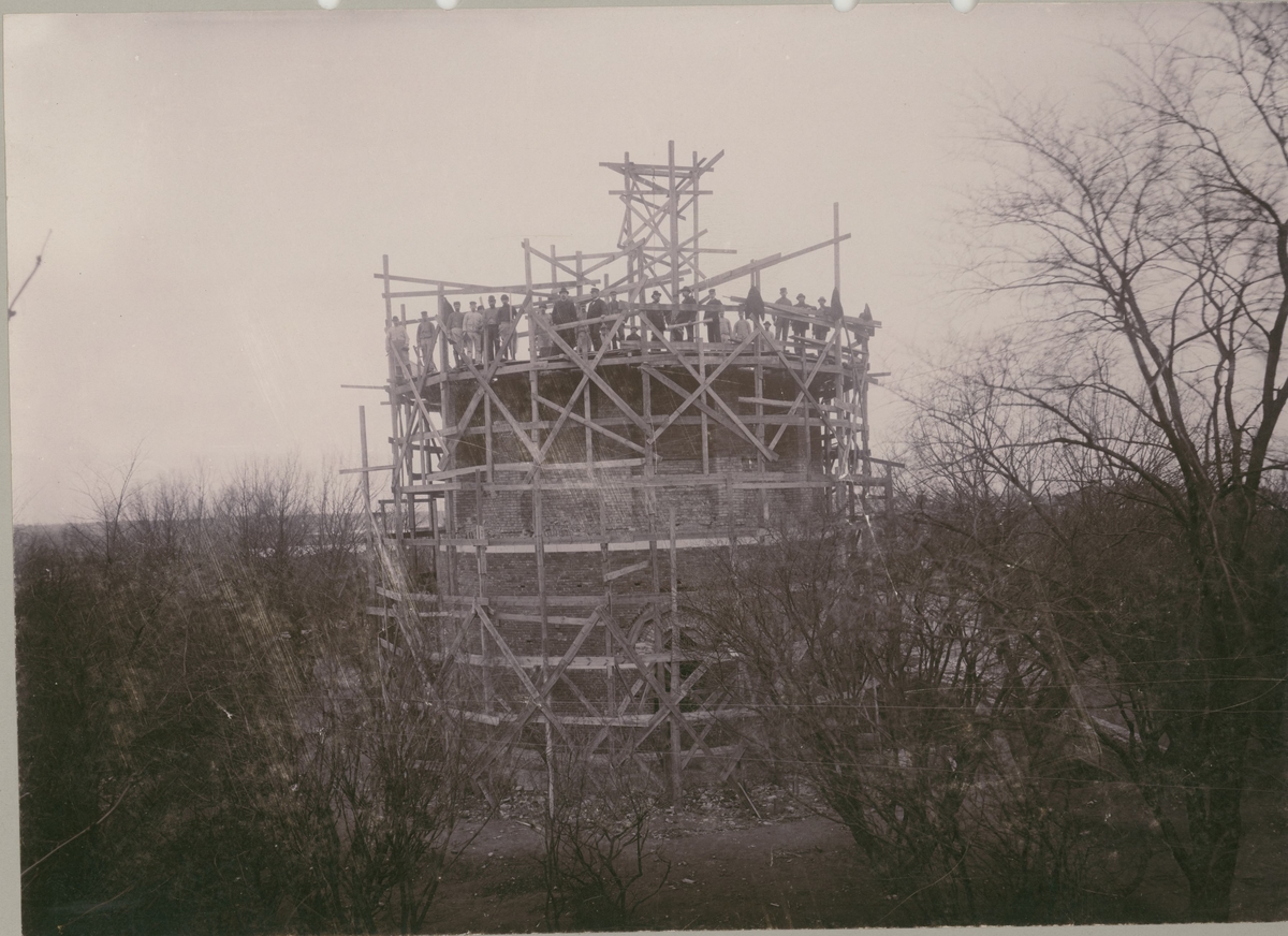 Gamla vattentornet i Kalmar under byggnad.