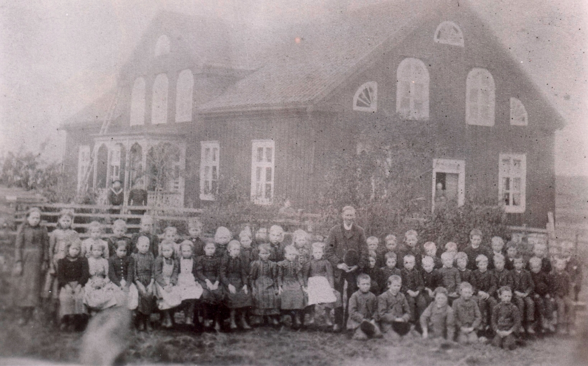 Vena skola 1895 med en av socknens äldsta skollärare, Nils Larsson.