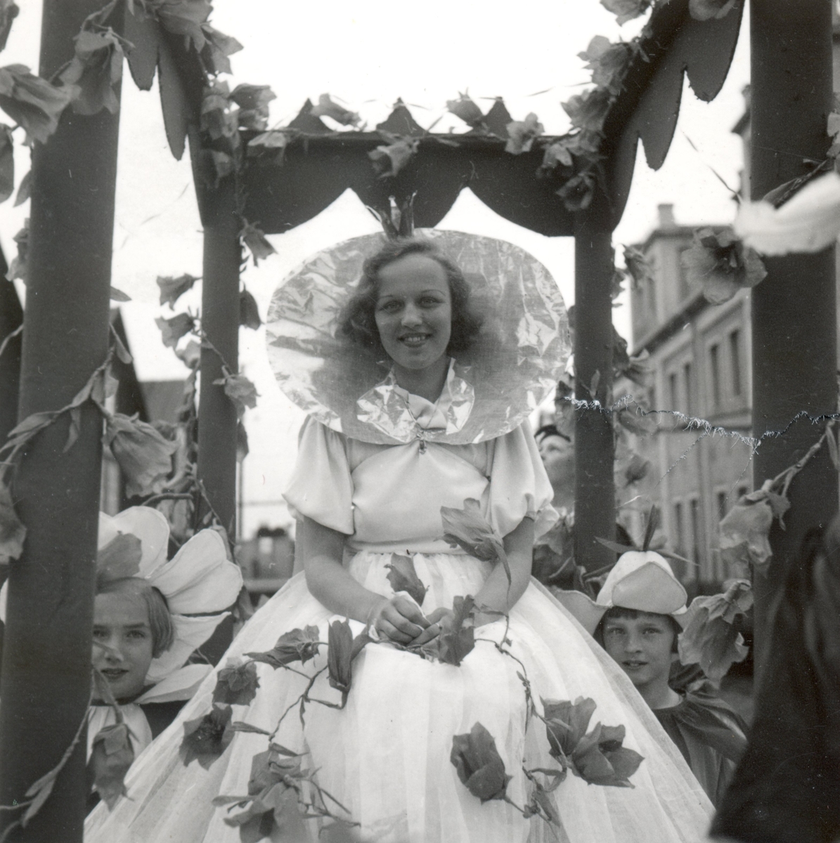 En scen från ett karnevalståg i Kalmar. Barnens dag omkring 1940.