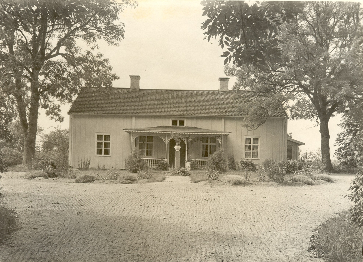 Gulvit huvudbyggnad. Sexdelad plan, till höger kökskvist. Ett par hundra år gammal.