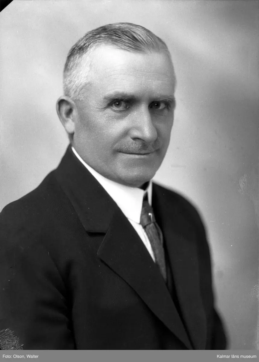 Ateljébild på en man i kostym, slips och slipsnål. Beställare till bilden: Herr Emil Dahlborg ifrån Kalmar.