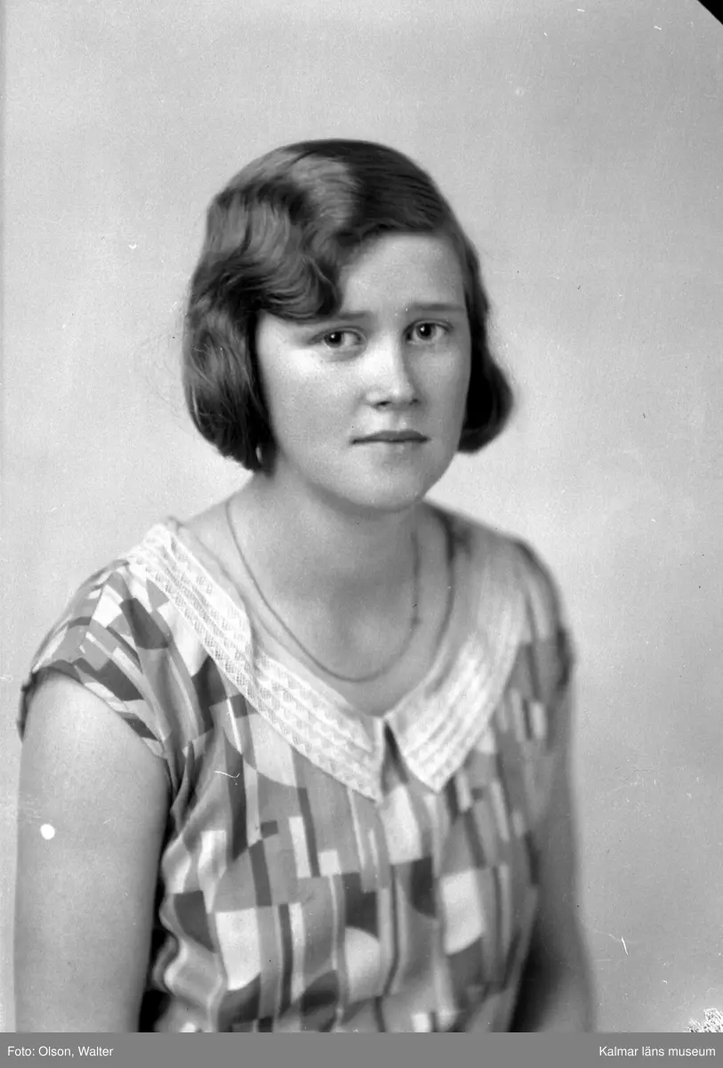 Ateljébild på en kvinna i halsband och klänning. Beställare till bilden: Fröken Blenda Fredriksson ifrån Tvärskog.