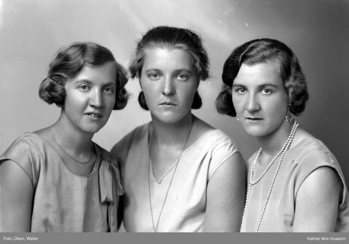 Ateljébild på tre kvinnor. Beställare till bilden: Fröken Sigrid Johansson ifrån Vera Skomagasin i Kalmar.