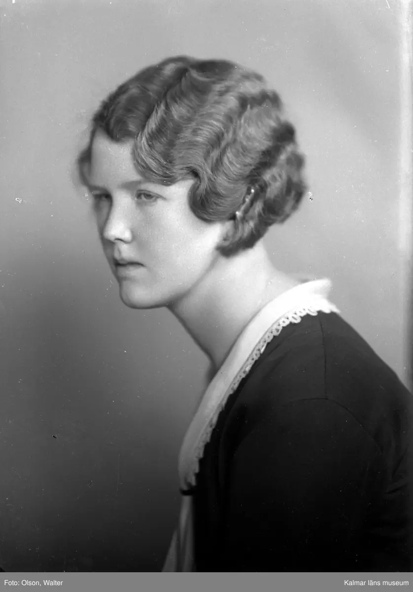 Ateljébild på en kvinna i blus. Enligt Walter Olsons journal är bilden beställd av fröken B Örtendahl.