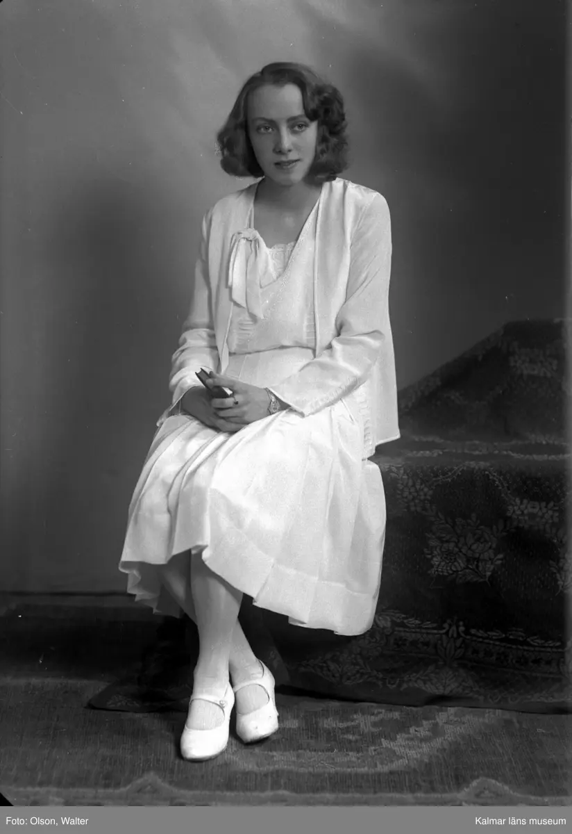 Ateljébild på en kvinna i klänning. Enligt Walter Olsons journal är bilden beställd av Asta Adén.