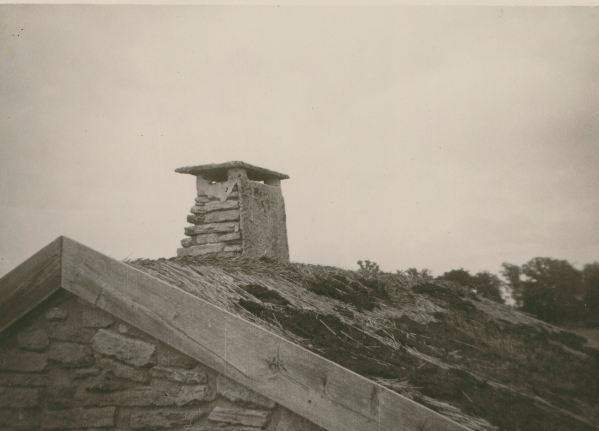 Smedja, delvis grävd i marken. Ag- och torvtak, skorsten med flisa.