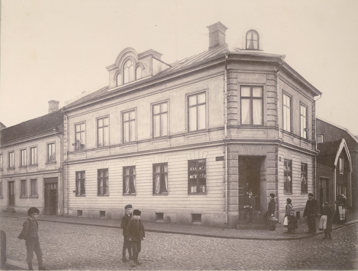 Gustaf Petersson skeppshandel. Byggt 1893. Huset på vänstra sidan byggt år 1830.