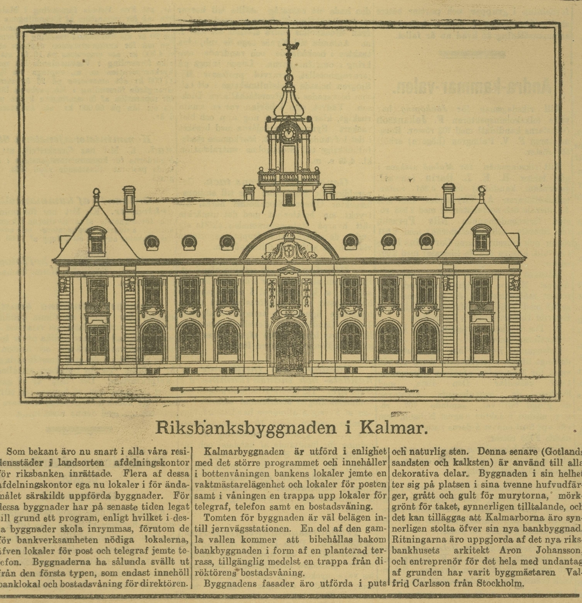 STOCKHOLMS DAGBLAD Söndag 28 September 1902. Riksbanksbyggnaden i Kalmar.