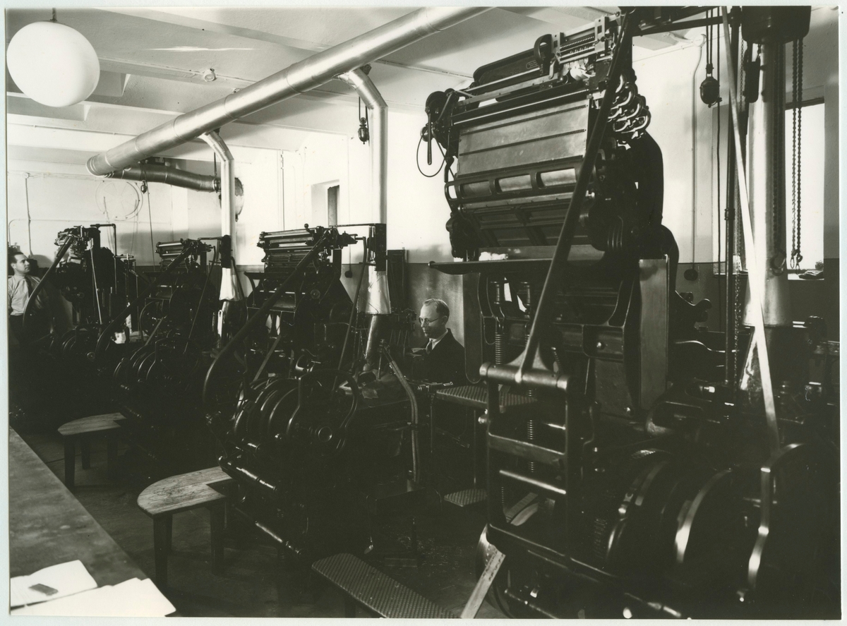 Sättmaskin på Barometern. Närmast i bild är typograf Carl Isaksson.