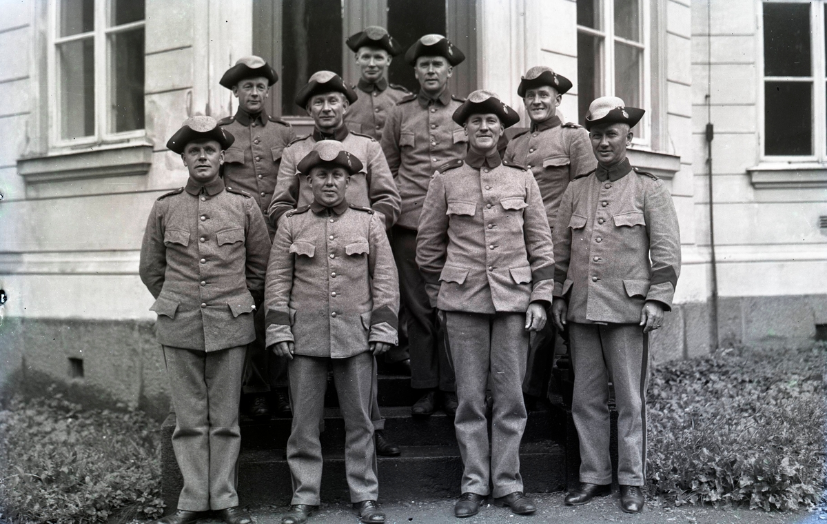 Män i beredskap under andra världskriget. Observera de ålderdomliga trekantshattarna!