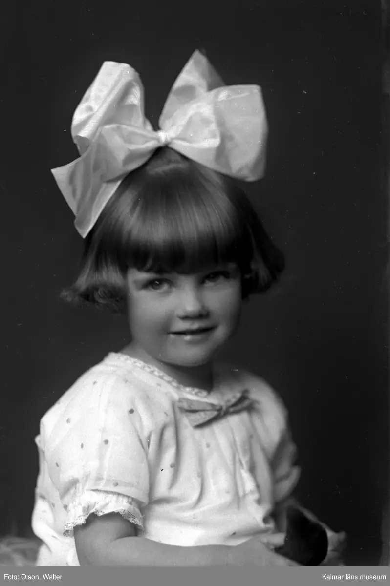 Ateljébild på en flicka i hårrosett. Enligt Walter Olsons journal är bilden beställd av herr Oskar Malmberg.