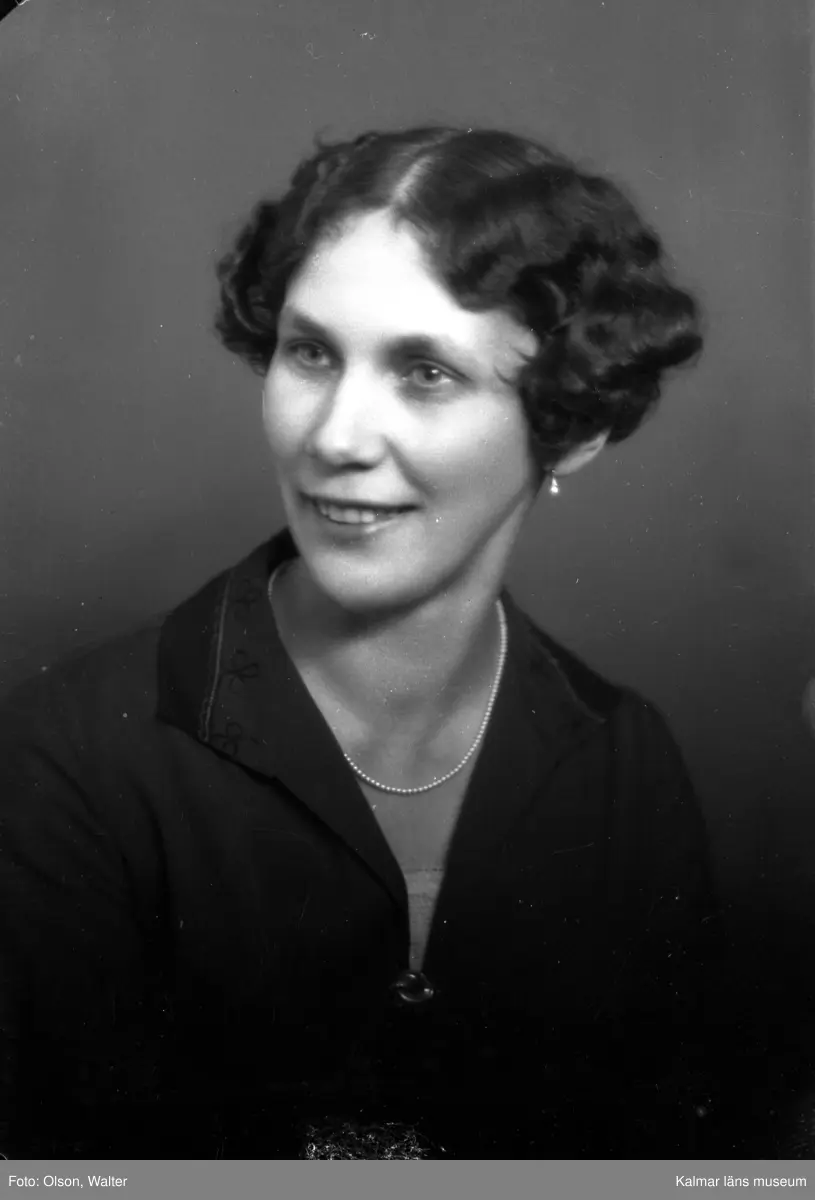 Ateljébild på en kvinna i halsband och klänning. Enligt Walter Olsons journal är bilden beställd av fröken Rut Zetterberg.