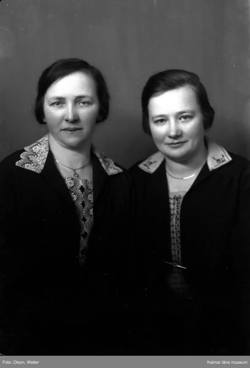 Ateljébild på två kvinnor. Enligt Walter Olsons journal är bilden beställd av fröken Emma Rosén. Kalmar läns museum känner inte till om den personen är avporträtterad.