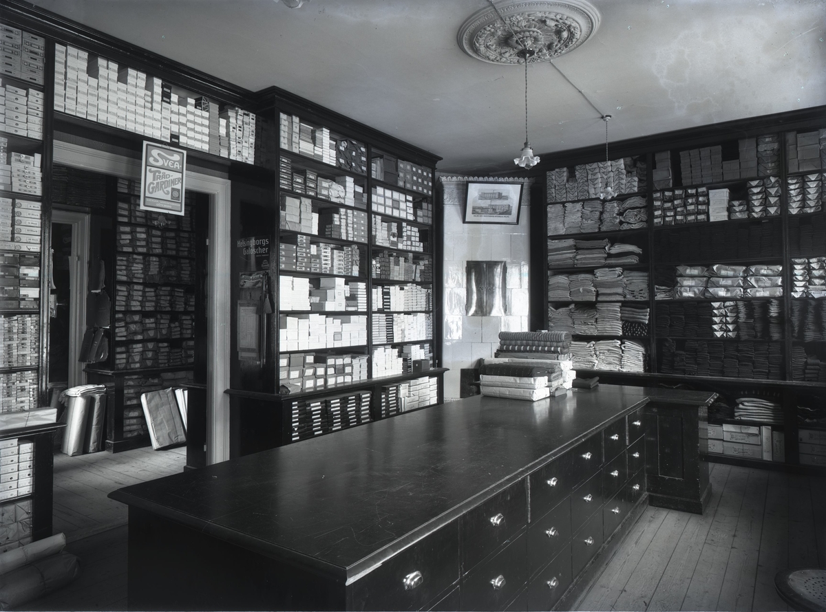Bröderna Berggrens klädekiperingsaffär, hörnet Kaggensgatan och Storgatan.
