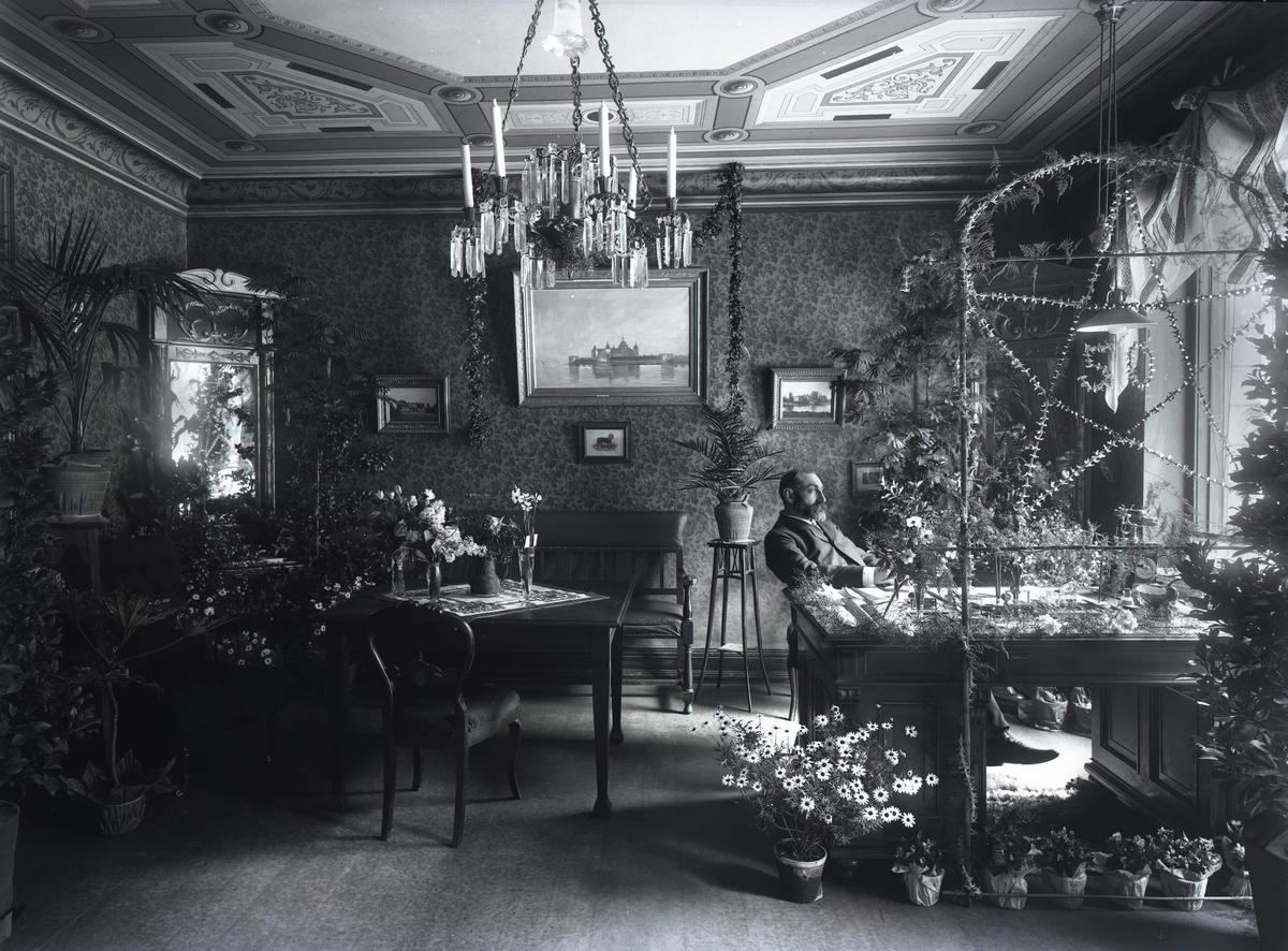Högtidsdag, troligen födelsedag, med blomsterhyllning.