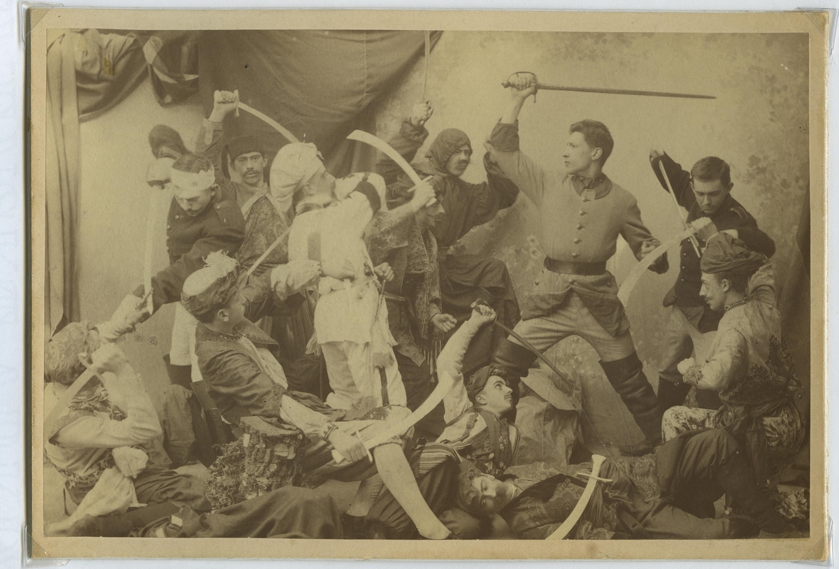 Kalabaliken i Bender - tablå vid en av gymnasistföreningen N3 vid Kalmar högre allmänna läroverk anordnad soaré 1892 eller 1893.