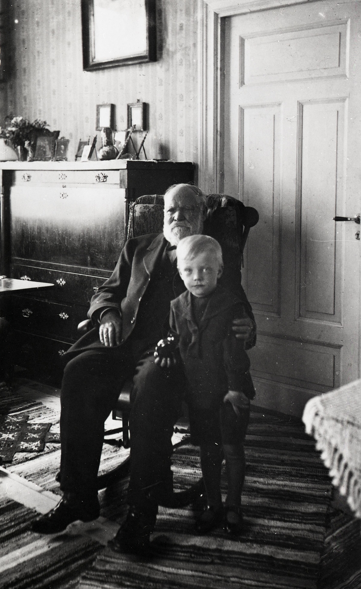 Fabrikör Johan Björkman vid 90 års ålder samt Sten Sture Erlandsson (5 år) Fagerhult.