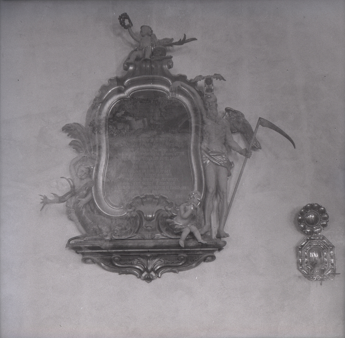 Möjligen ett epitafium ifrån Åby kyrka. Med en allegorisk lieman.